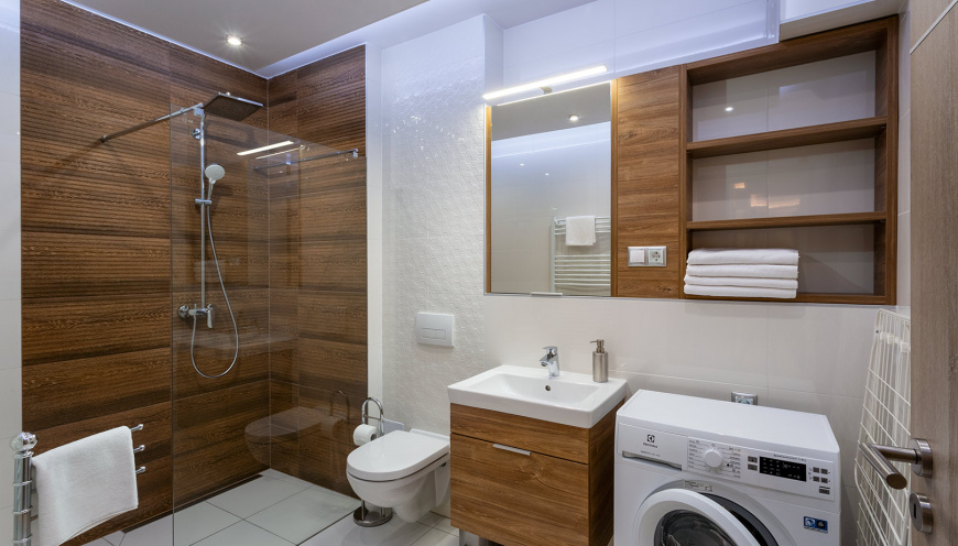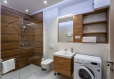 Két hálószobája és tágas nappalija révén akár 6 fő is kényelmesen elfér. A konyha és a fürdőszoba a legmodernebb műszaki berendezésekkel lett felszerelve. Mosó- és mosogatógép, tűzhely, mikrohullámú sütő, kenyérpirító, turmix gép, kávé-/teafőző található az apartmanban. A nappaliban internetes síkképernyős TV, a lakásban ingyenes wifi áll rendelkezésre.