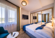 A páratlan panorámájú tetőteraszon napozó, nyugágyak, szolár zuhanyok várják az itt megszálló vendégeket.